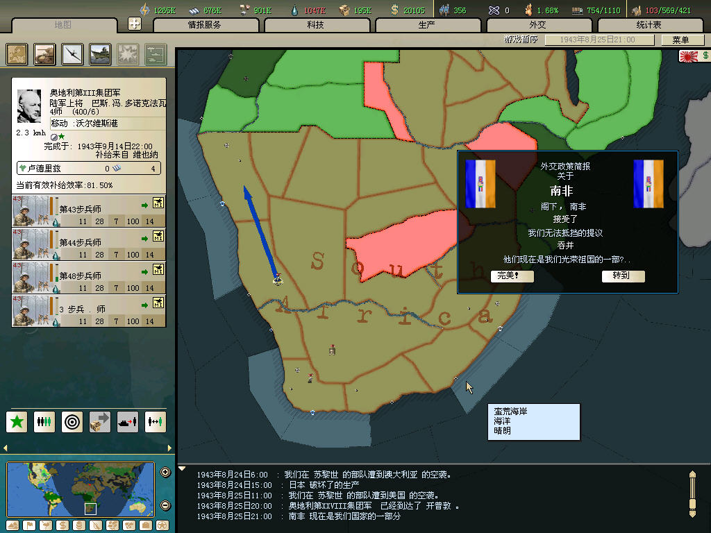 8月25日晚,南路軍佔領開普敦,南非覆滅,南綫戰事結束