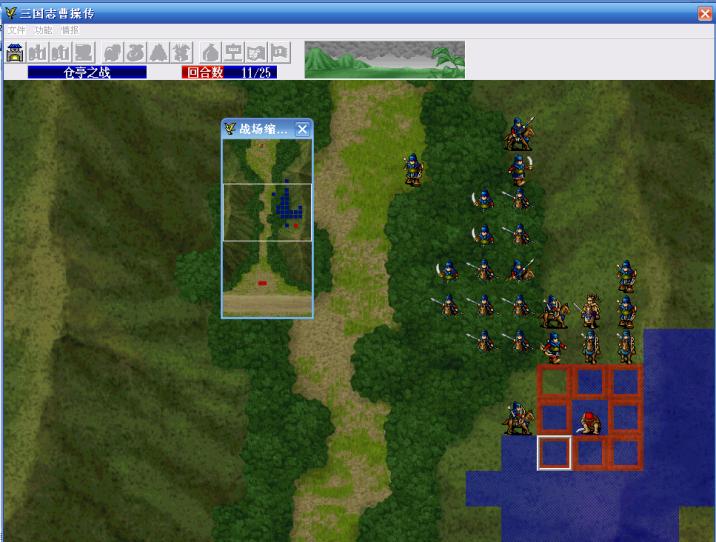 下面是许褚前几个回合的走位,白框的位置是本回合许褚的移动目标,如果在截图时我不小心碰了鼠标,造成位置偏差,还请大家原谅。