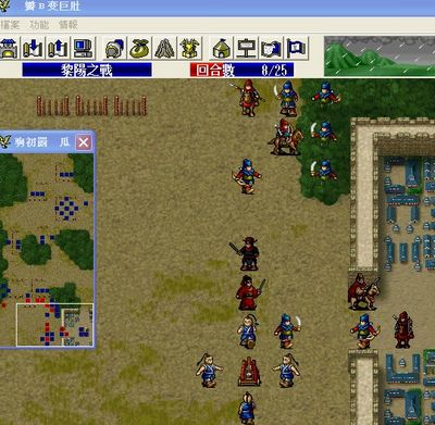 第一回合,典韦凭借爪黄之力,进入区域(0,0)-(19,28),也就是越过第一道栅栏,引发栅栏里的7名敌人主动出击,曹操引一个弓兵,不要让他挡典韦北上的路,张辽引那个步兵,曹仁往上走准备过栅栏,其他人往袁谭所在的城里走。