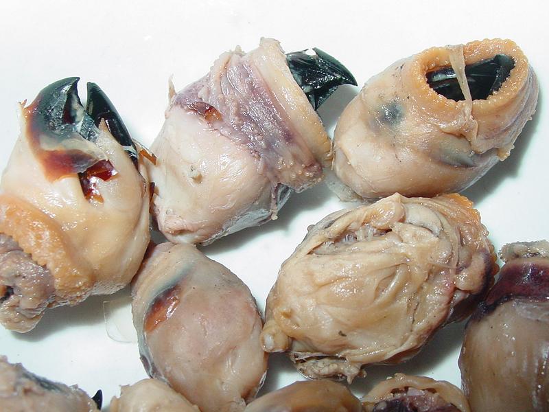 在青岛管这个叫鱿鱼牙,但凡做烧烤的都做,倒不稀罕,只是个头……也就半个到一个指头肚大小吧……