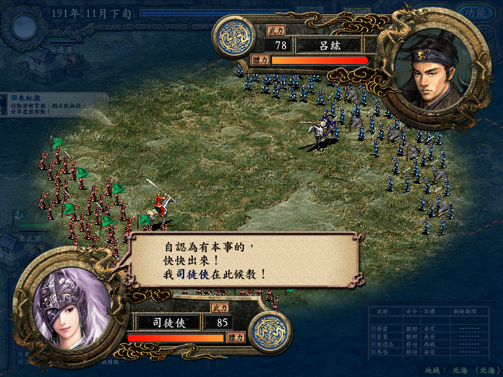 北海是我登了袁绍的一个人,结果他是个运兵队,带了1w兵,我想让他绕回长安,路过北海的时候发现北海有600个兵,就直接占了北海。我现在把一帮用不上的将都派去,看看能不能发展发展。