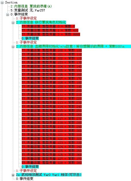 1,人物相邻测试与所有的人物能力导出等都使用了人物变量(给整型变量中赋值一个人物序号的值,然后再使用其对应的 Var变