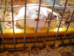 : [因为眼睛睁不开,所以懒洋洋地眯着眼睛到笼子边上看看]