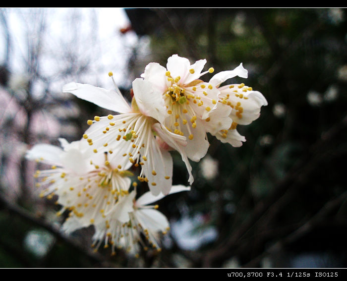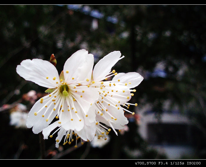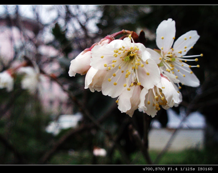 看似梅花却不似,不知是虾仁花。那个晶格状是后面楼房的瓷砖撒,镜头不奇怪吧,拍微距偶尔会有二线性。
