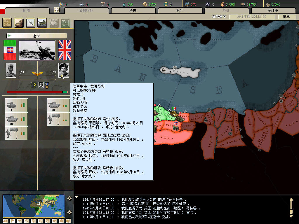 同样的北非战场,我80几个精锐师,还没加事件刷的,被英军赶下海3次。。。。。。