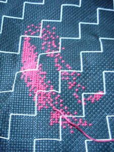 绣的有点恶心了……很单调,全是一个颜色……而且还东一针西一针的,老是得看图纸。图纸还不清楚,格子小小的,老是怕看串行……