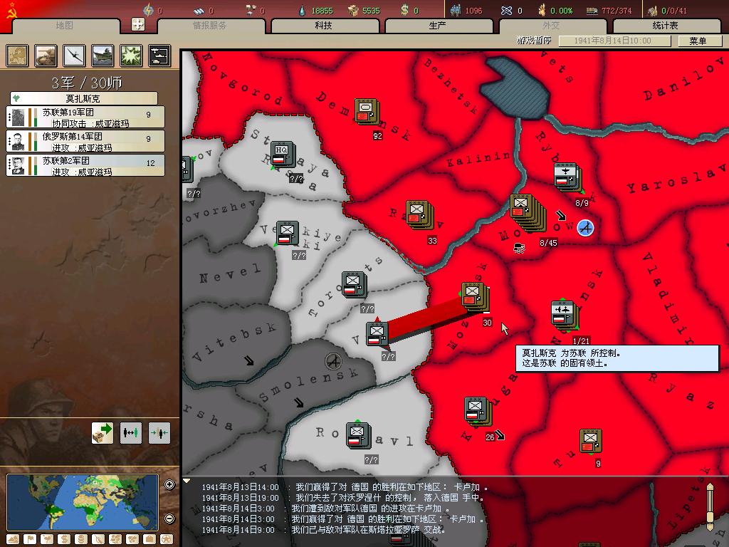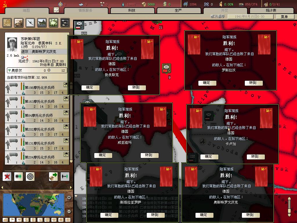 画外音:说真的,这个事件给红军爆的15个组织度是继续守下去的保证,人海战术的组织度本就偏低,在卫国战争事件之前,组织度只有德军的一半,和小胡子的装甲先锋比起来,基本没有战斗力,属于一触即溃的类型。现在红军的组织度可以达到60+,加上具有数量优势,才真正可以和德军在正面战场上一较高下了。