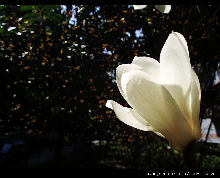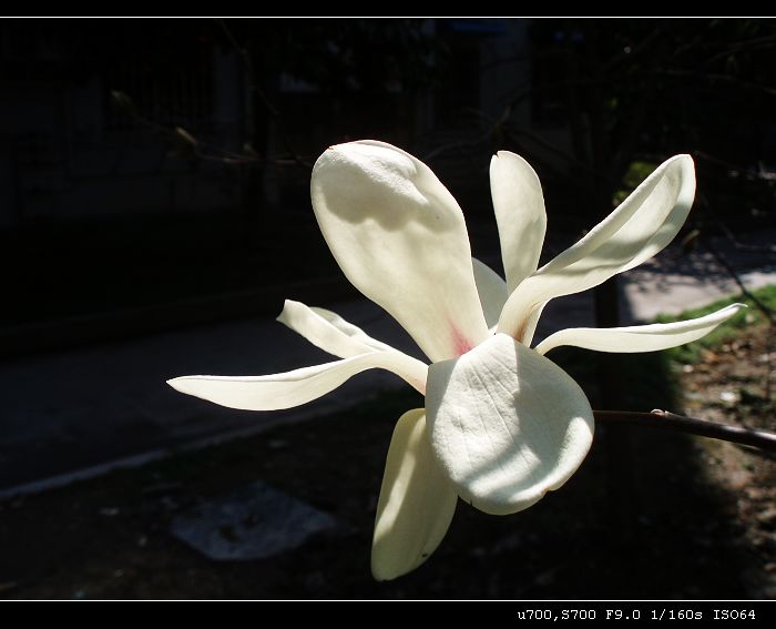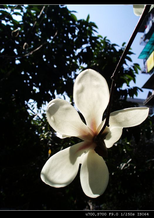 不止院子裏有玉蘭花,就連小區的街道徬也栽種了些許。加上天氣晴好,自然不能放過啦