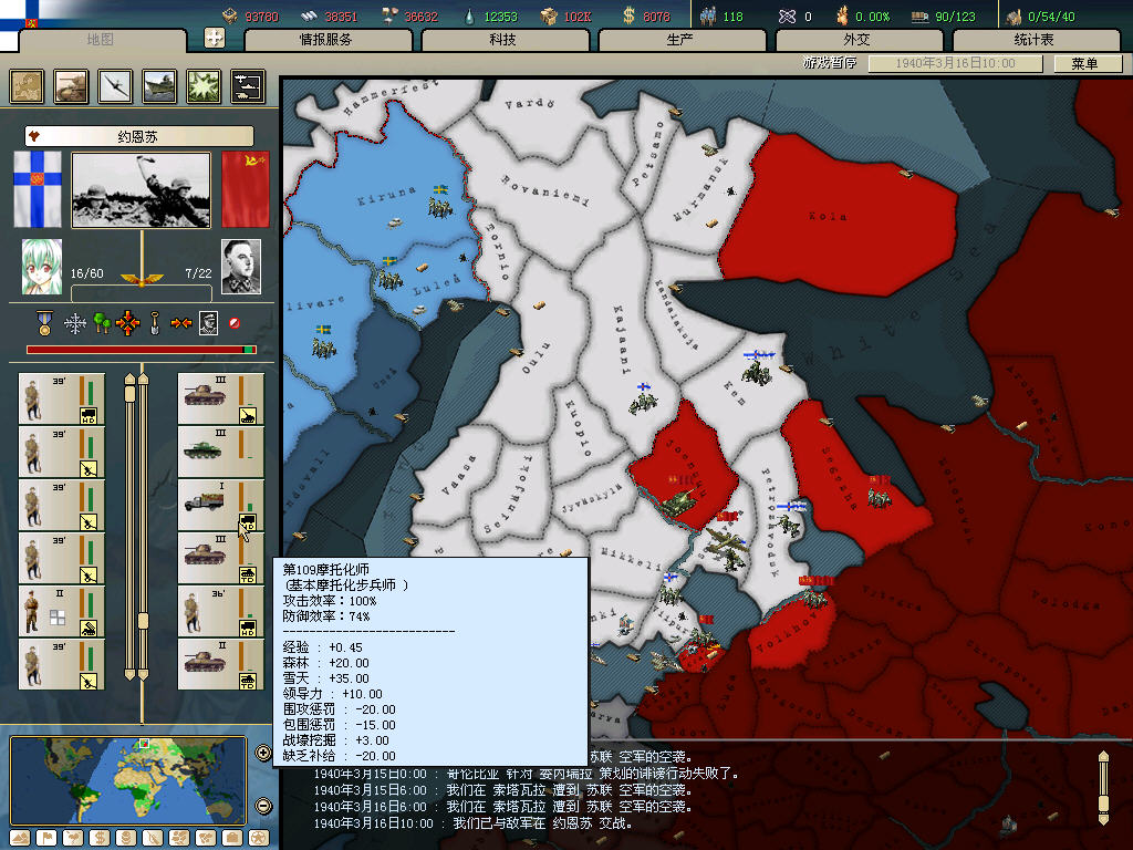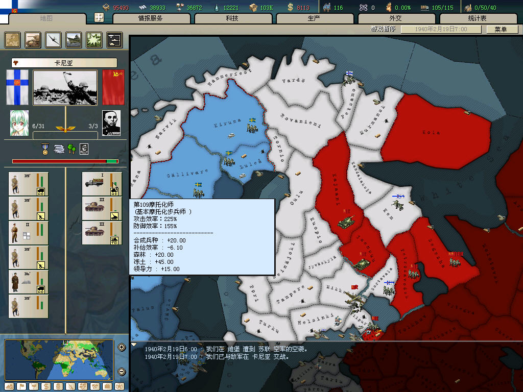 真正麻烦的是空军.我的应对策略是在维堡留2个师挖战壕.其他的部队都3个以上一起行动.飞机就优先炸人少的去了.