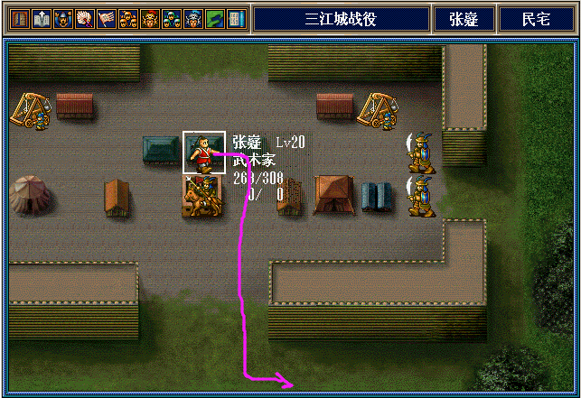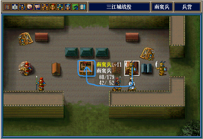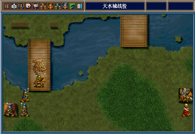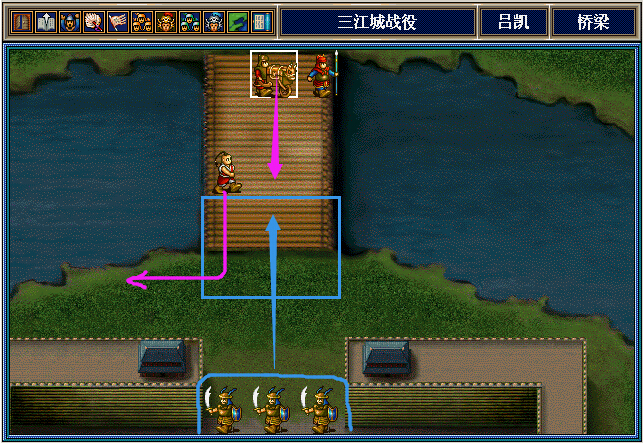 思路:马岱魏延从左路绕到下面打董荼那,期间马岱给阿会喃2个压迫之后让邓芝从左路下来在左边村庄中和阿会喃对打。