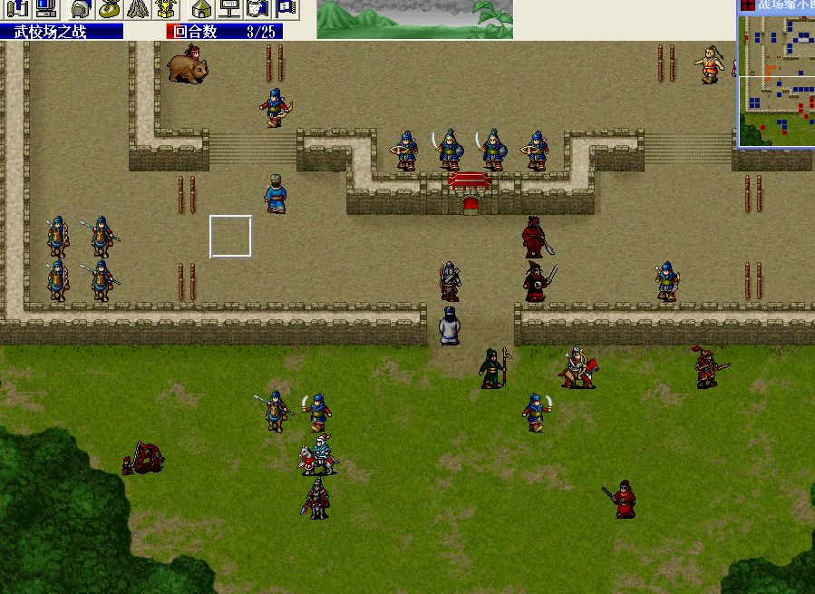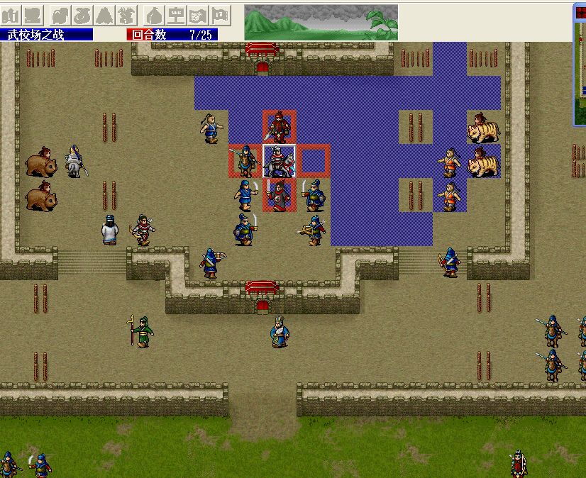 这儿有两个四格攻击的武将,邓成和何七,如何让这两个敌军打我军而不反击得经验就是最大难题。