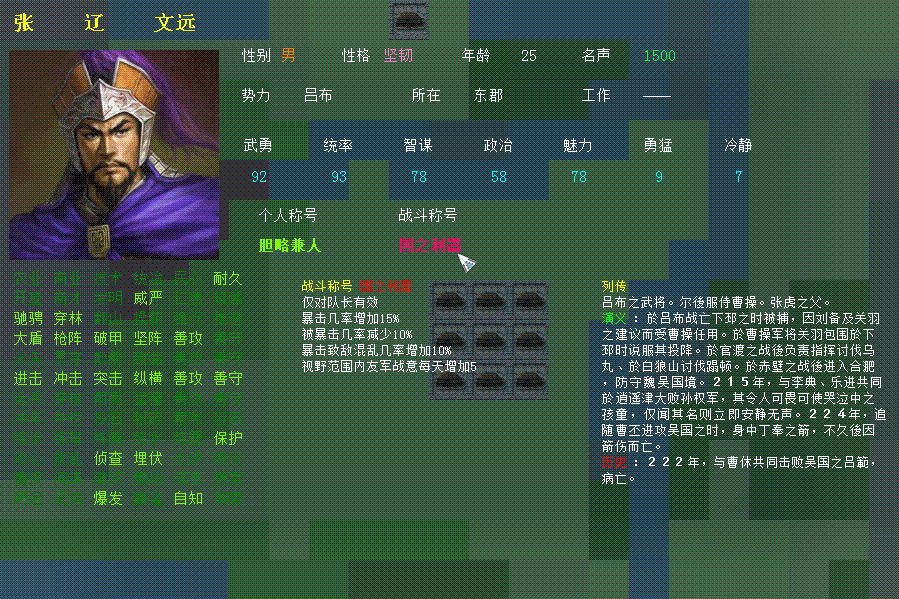 少数技能,如策略除"情报"外的技能,以及人物状态的技能仍没有完成。这部分并不包含在内政与战斗中,所以并不影响游戏。