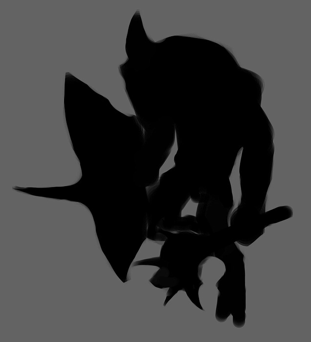 首先打个底稿,绘出大致形态。再细细祛除多余的黑色,定下造型。