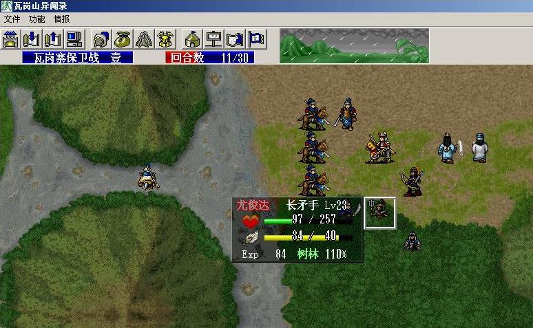 开始的时候全体不要移动,等到第8回合自动发生剧情,埋伏出现后就可以反击了。但是由于瓦岗寨不能被占,所以小管和秦琼最好不要移动。里面两位建议换成老谢和傻子,让傻子给老谢加攻击,可以快速帮小管杀敌!右边那三个伏兵最好不要冲的太快把本来要冲下去的那几只骑兵给引回来就麻烦大了,小管虽然受到多人攻击,但由于关隘华丽的地势加成,其实问题不大。反倒是秦琼那边无人问津好浪费……徐老道那里的两个力士最好快点灭掉,攻击太有威胁了!至于魏文通和新文礼那边,如果能把他们堵在河里的话会好很多,第9回合,右上角唐壁带人马增援,胜利条件变更为击退主将,唐壁那批人会直接去找秦琼,终于有事干了~ 如果准备收伍氏三兄弟其中之一,那么这关不能让任何一个杂兵因为主将撤退而撤退,必须全部歼灭!所以之前选择了小管的方案就不行了。要注意其他人还好说,这个唐壁实在太弱!还特别喜欢主动攻击秦琼,即使不攻击只反击的话他也撑不了4回合!为了收三伍,就不能在他手下杂鱼没收拾干净前干掉他,之前如果山寨里放的罗士信,那现在就可以顶替秦琼堵住门口了,为的是减轻给予唐壁的损伤!在来护儿死之前即使秦琼和他对话也不会撤退,只有等到来护儿死了,秦琼和他对话就会撤退了!所以提前把秦琼调走也是有好处的。老谢就在山寨里和傻子一起尽快杀掉其他的杂鱼,最后再干掉唐壁就行了。小管那边虽然敌人不少,但其实一点危险也没有,凭借天然堡垒的高加成,配合小管的豪气,轻松面对杨林+尚师徒等人的合击,可以练练甲,晚点再杀他们。第11回合北边山上马三保率兵增援……此队人马不在三伍条件中,可以随便杀!下一回合会有选择是否让翟让派兵出击,选是的话回合减到25,尚青山、夏遇山、朱能三人出击。选否不变。记得不要让程咬金接近新文礼,会败的。