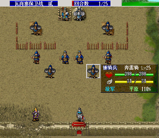 第一回合,上边两个锤骑兵,两个弓兵,还有法师