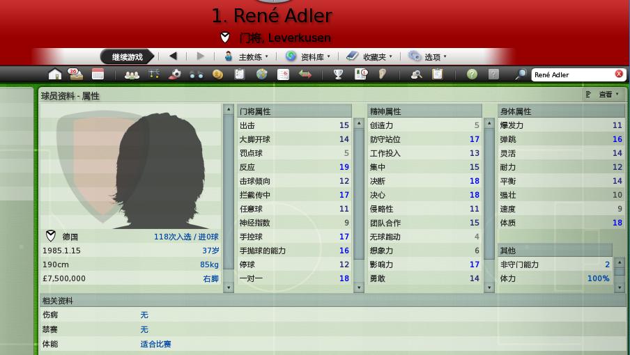 我很喜欢诺伊尔和阿德勒,潜力是180,阿德勒的潜力是187,他们都一直在原来的俱乐部,而且都是俱乐部欣赏的人,估计退役要成传奇人物。但是国家队生涯就不同了,诺伊尔次次入选,但是只出场过一次,一直是第一替补。而阿德勒一直是主力门将。。。。悲哀啊~~~德国出门神!