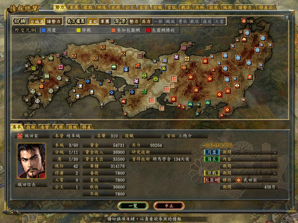 武田的骑兵太厉害了,我选信长,只有守的份,根本攻不过去,和军神同盟的,但是学不到好的技术.德川给他灭了,现在就在我城市旁边
