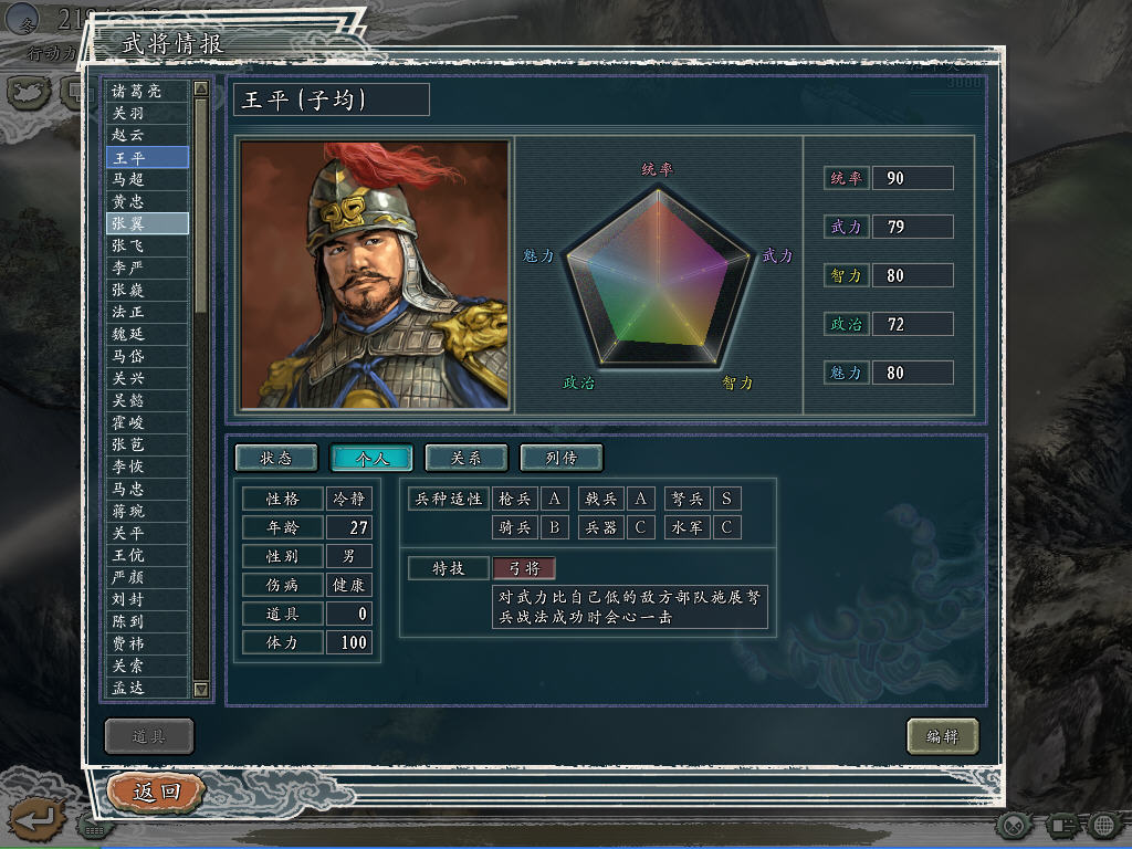 王平(无当飞军统帅、汉镇北大将军,焉能不统90+?)