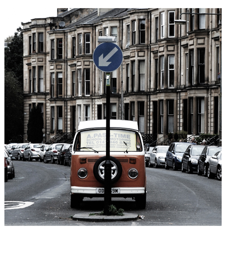 2P建筑和汽车的方向延伸线一致,有一点闷。不过好在车子红色,车型不同另外有人在车子中间,冲淡了闷感。