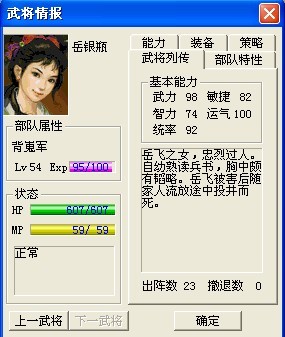 如果选女兵,建议武80统90智100敏90运90,武力果富裕的话,将武力吃到100,神话线后期这样的yyp拿双锏就是神一样的人物。