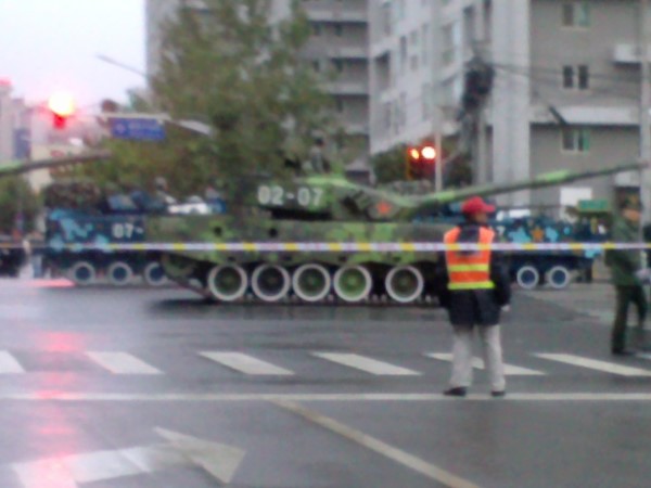 9月6日国庆预演之前,装甲部队通过大望路附件,正开赴长安街.