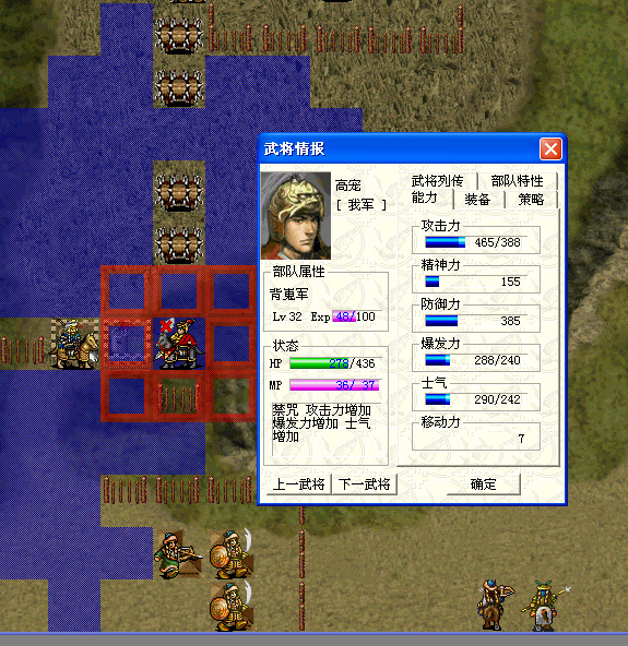 第二回合,敌人反击,金无处 必然是 吹风,而哈铁龙随机攻击(有混乱,毒烟,肉搏),(SL大法几次后,即出现肉搏)高宠反击,哈铁龙死。(我是反暴击,因为练果,武器等级不高)