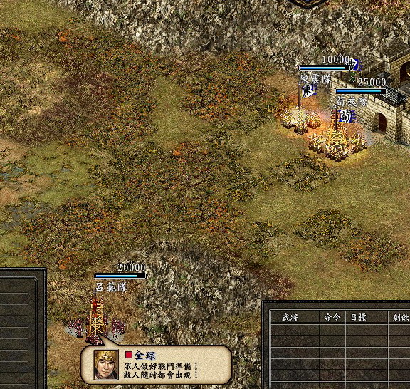 然后,等着傅士仁带着孙家部队游行过来,西城继续出关二的常规队+齐射队+攻心队,逮了一个太史慈队使劲打,这里的图怎么就没了?唉,因为太史慈队里4个人全部武力80以上,所以,攻心队和齐射队第一排都没放武将,代价是,速度好慢啊!!又是从12月上旬,打到1月上旬,还是没灭掉太史慈的25000部队。