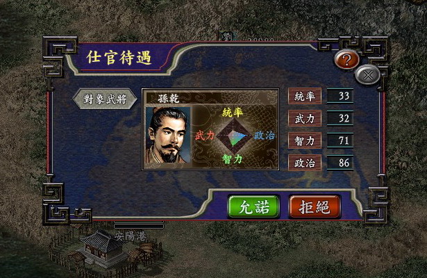 开局,刘琦四周分别是险恶关系的曹操和孙权,这两家联手谋取荆州;以及新野城小兵少的刘备,虽然将猛,可惜,自保都难。