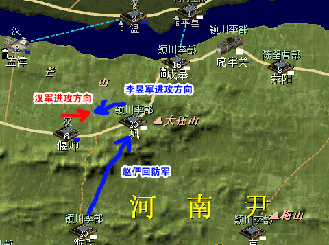 南岸主力沿大路经虎牢汜水关向陈留攻击