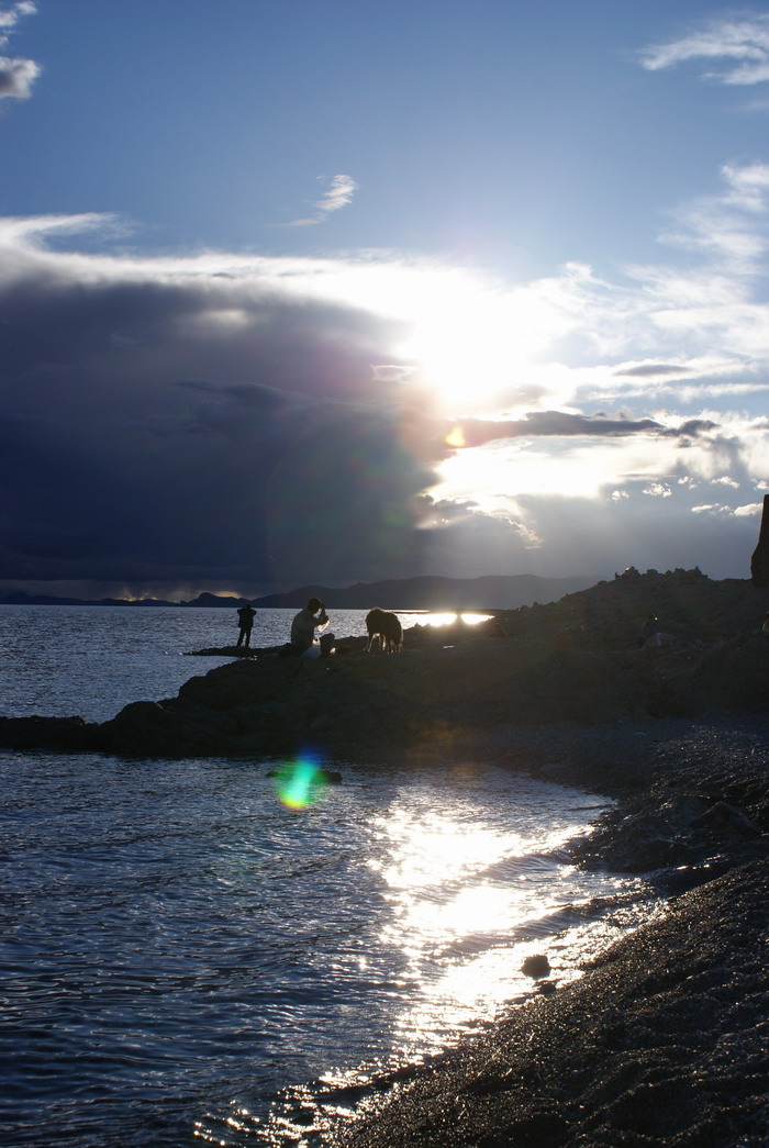 看起来好纯朴的牧民,不过,提醒各位,看到他们离着远一点,由于他们本人都不能接触圣湖纳木错,所以空守着一个湖却只能喝雨水雪水,所以从来不洗澡;还有,他们是小偷,标准的“小偷”,我背包扔地上,去拍照了,包里有相机有帐篷睡袋,结果,他们只拿了我的泡面饼干巧克力,围着我的包裹一起分着吃,汗死,我发现了还说,我们都是中国人,你们汉人每年援助我们那么多,不差这点。我差点想投湖。