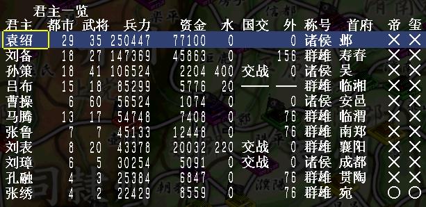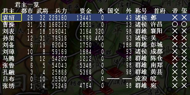 说明:采用新官渡剧本。开局使用势力关系、宝物数值、宝物归属三补丁。