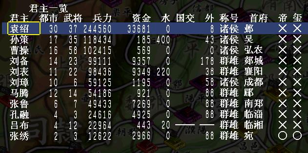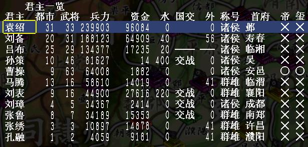 标题: 吕布の野望——郑问之三国志新官渡剧本战报, 至208年,孔融刘璋张鲁刘备刘表灭亡。