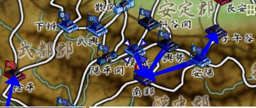 曹操杨修部取子午谷,蒋济部取武关,张春华部取临晋。