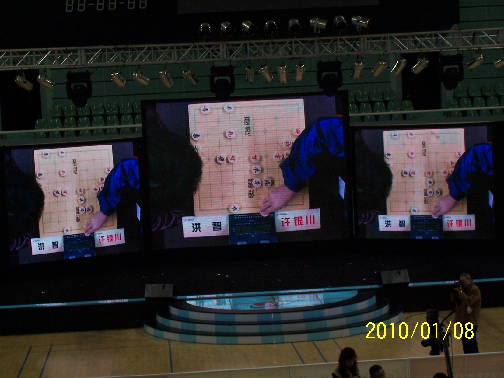 胡老师上台宣布结果并说明天赛前讲棋,开赛前主持人倒是说过不设现场讲棋,赛后为什么不讲呢?后来我想胡老师也需要研究一下。接着就是抽奖,抽二等奖时主持人请裁判长丁晓峰来抽,这位是不是以前那位安徽名手呢?