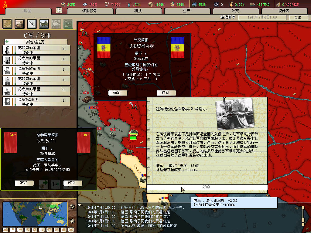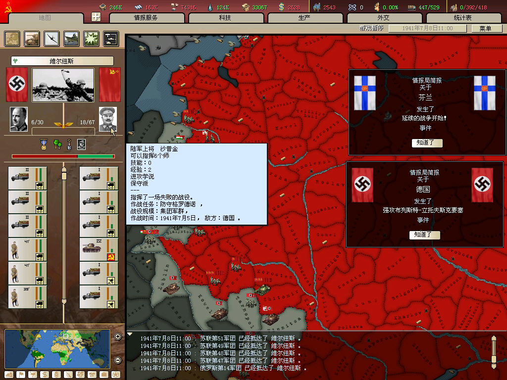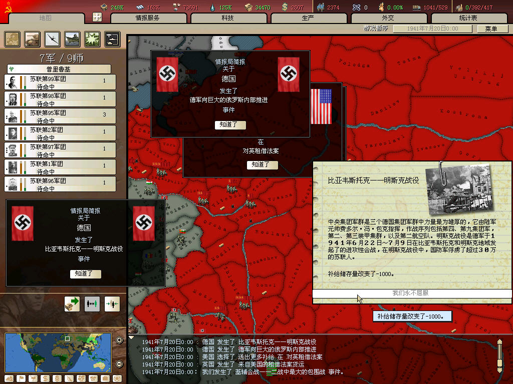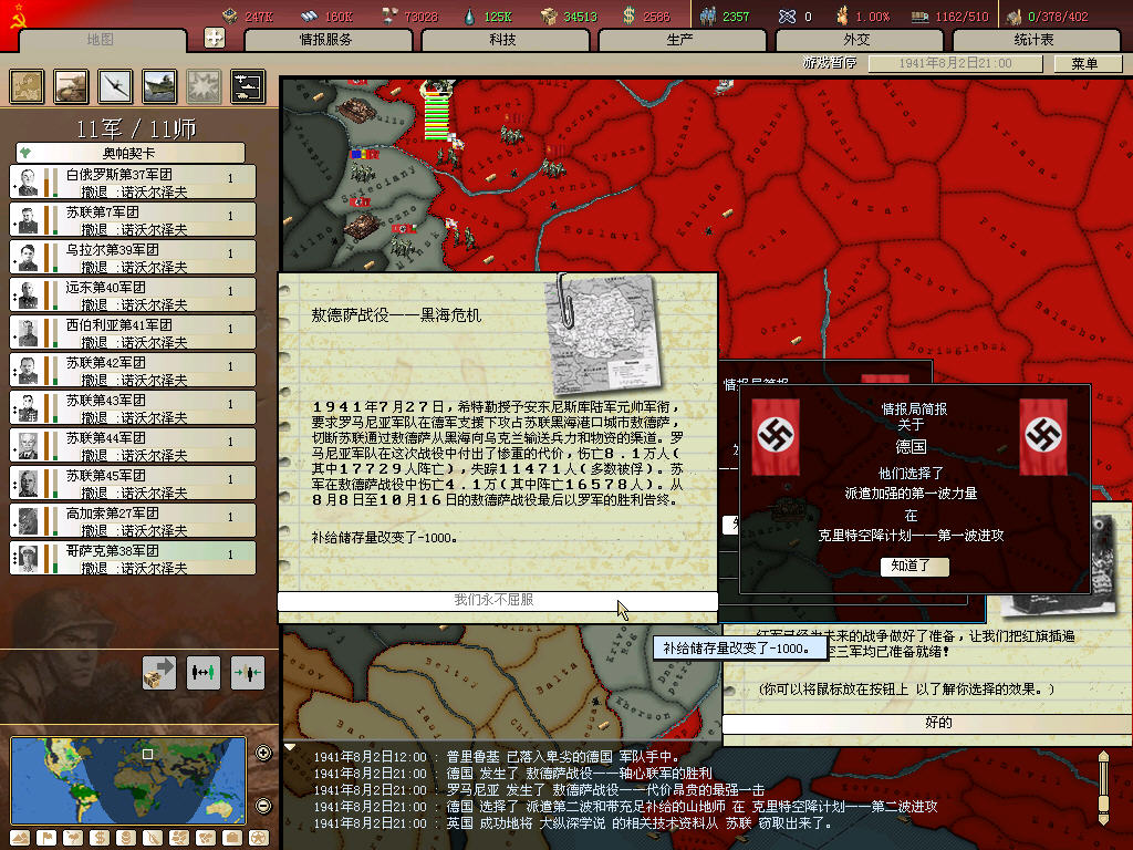 事件重复是读档的缘故,有时一个撤退方向不对,二十几个师就给坦克撵上了