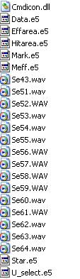 实际上,左边一栏列出的就是大部分曹操传图片文件的名称,熟悉英文的朋友都可以大致猜出某些文件存的是哪类图片。您可以好好浏览一番,各种熟悉的图像便会一一呈现。本步我们只对Unit_atk.e5、Unit_mov.e5和Unit_spc.e5进行操作,这三个文件就分别存放了1楼讲“战场(S)形象”时提到的那3类图片。
