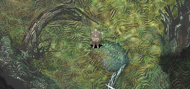 “哈!这是否代表你会还我清净呢?那么我欣喜地告诉你,那个传送门放在这个生物的骨骼末端的地方。它会让你回到诅咒城,就是你来的地方,而且我还可以想出几个让你的旅程更便利的方法。”