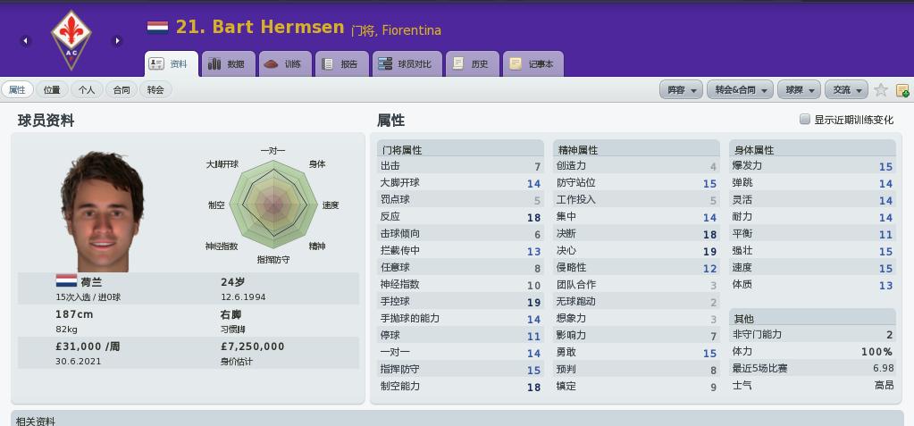 立下汗马功劳的frey,因为年事已高两年前逐渐被自由转会到来的ak取代,目前只能偶尔上场,但仍然有稳定的表现。另一方面,年轻的hermsen也迅速成长为可靠的二号门将
