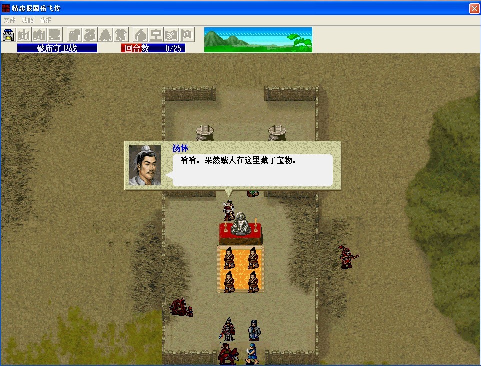 今天重温了《精忠报国岳飞传》。因为本人玩战棋游戏玩的很菜。所以以前都是借助修改器才通关的。这次想凭自己的本事打一遍雷线。每天一关。玩太多关,实在是玩不起。因为本人能力有限。所以请大家多批评指教。