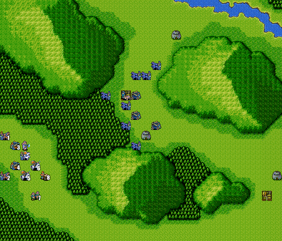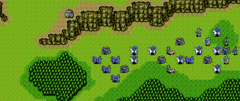 当时看运输队,军乐队太弱没用,骑兵不能进林子,很多战场我都是全体进林子然后把敌人非骑兵都引进林子消灭,最后利用斜角加远程消灭骑兵。