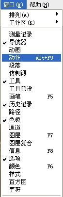 1.首先把要处理的文件放在一个文件夹,然后随便打开一个,打开窗口-动作,如下: