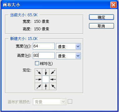 4.执行图像-画布大小,更改为64*80(曹操传的小头像比例)。