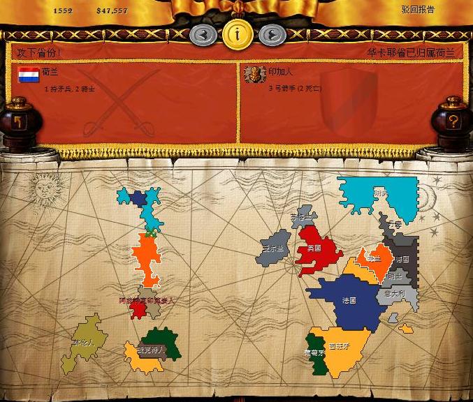 正因为如此,这款游戏对很多玩家来说往往会胜负难料,像《钢铁雄心》、《欧陆风云》、《维多利亚》这几款游戏可以根据一些历史事件的发展判断,而拓荒时代不幸,有地图的不固定性,决定了游戏没有可预料的时间顺序,而且这款游戏可以依靠海军来决定全局,这是其他战略游戏以陆军为主角的模式所不能比的,所以这款游戏很难有必胜的把握,所以,游戏结局谦虚的说最后鹿死谁手还不知道,最终游戏以玩家获胜,还是以电脑获胜还是个小迷。
