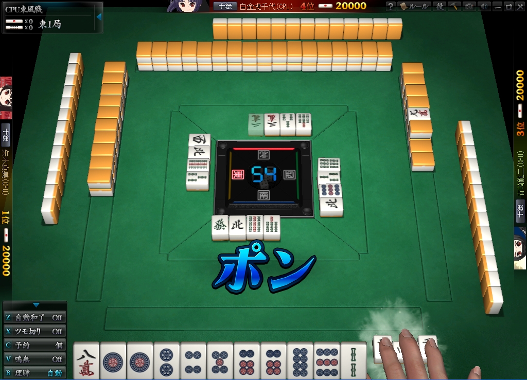 回到了学校(IP段属于联通),这回总算可以连了,成功登录,先练一把,主菜单最右边的按钮,点击,选择“CPU战”,进入人机对战。(不懂日麻规则的可以点击主菜单最右边按钮后选择第一个“麻雀讲座”)