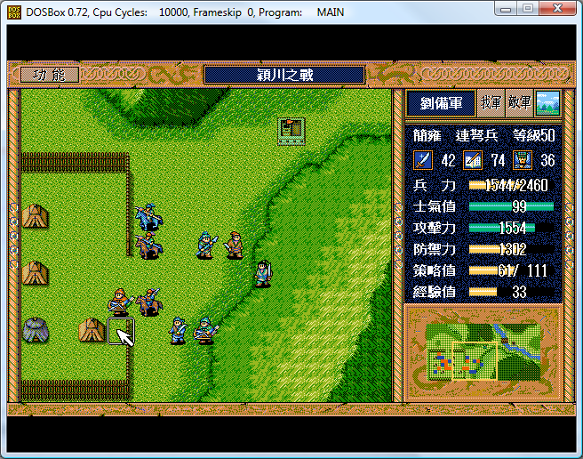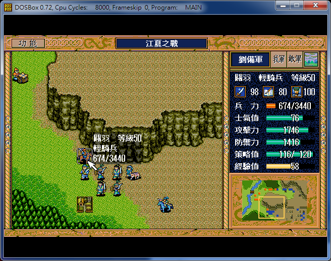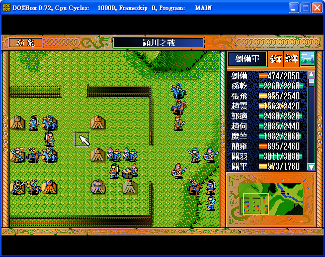 03回合,簡雍助攻、趙何吃17騎兵並升級,剛好讓孫乾糜竺郭適都能用策略,董梁右2,劉備上攻弓兵