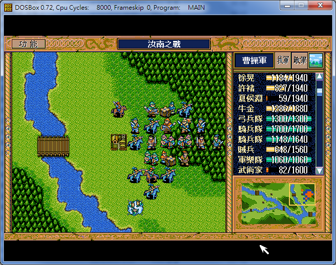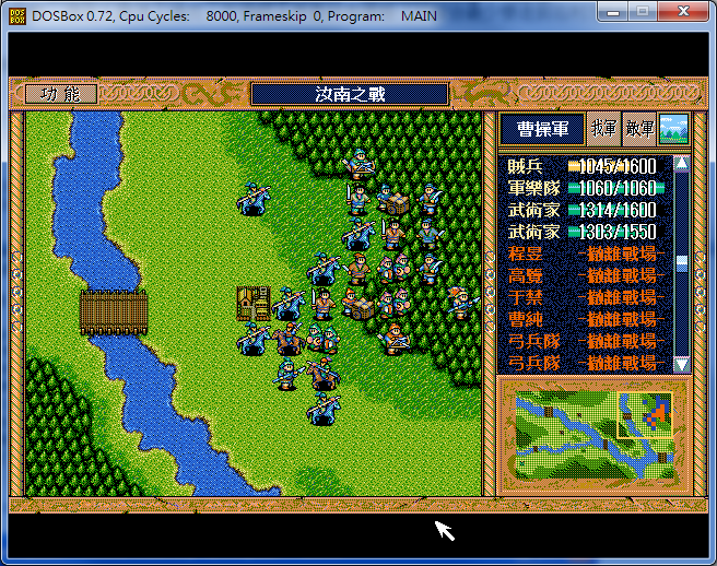 全滅3重騎後,27回合開始包圍曹操讓趙何領雙薪,之後為調出反擊趙何劉備退回森林讓董梁多反擊1次 (當時沒想到趙何可用焦熱書,且未引荀攸左移)