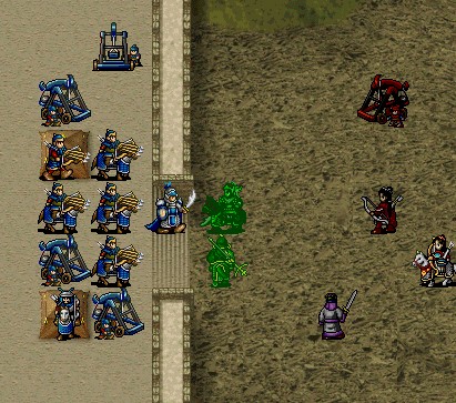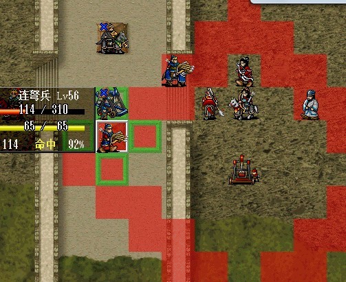 第三回合宗源灭道士及斜上角拿无名剑的勇士 周灵混乱追下来的勇士,美容输送宗源 敌军回合 贼兵砍到宗宝喘气,需要S/L :周灵不被混乱