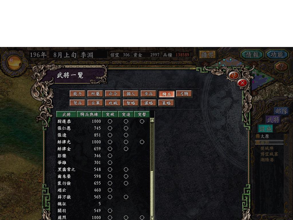 我很想打许昌,集中兵力应该可以搞定,但是如果跟忽必烈,铁木真外交失败的话,太原,新野就很危险了...忽必烈在武关屯了14万兵...