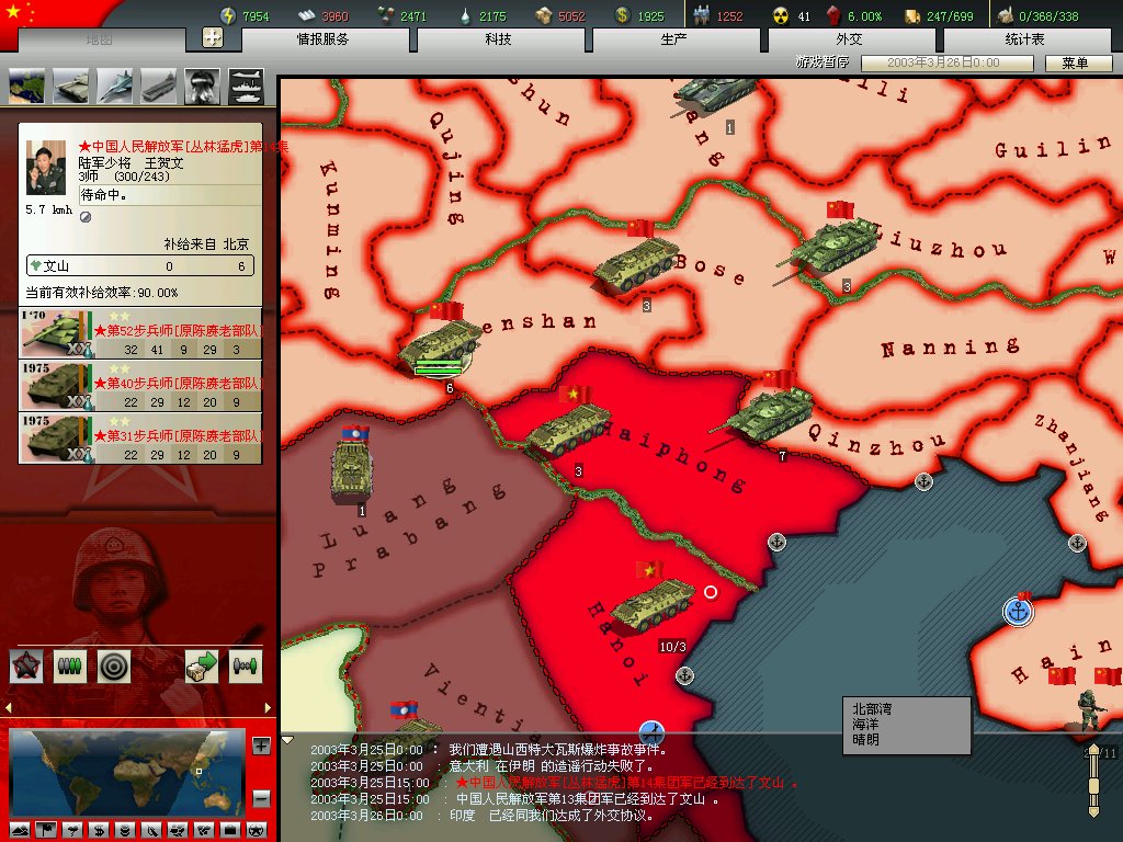 移植1.6的科技树,并修正了其中大量的错误,科技的难度被大大提升,同时增加了一些科技!突出了夜战的重要性!一个单位的升级要经过如下4个科技的研发过程:工业->装备->训练->编制。因此,落后国家要改善与发达国家之间的武器代差情况,难度明显加大!