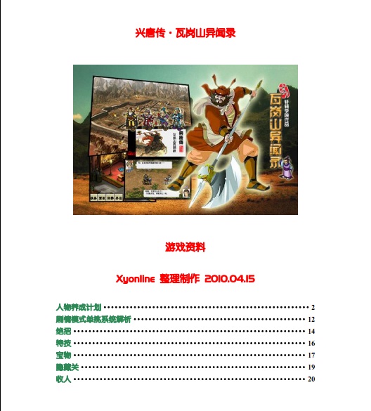 标题: 瓦岗山异闻录游戏资料2010.04.15更新
